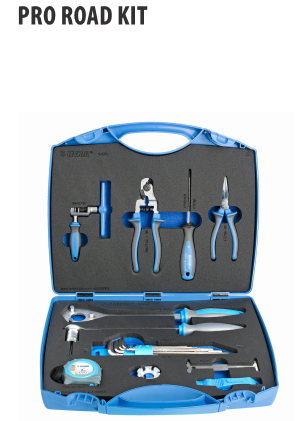 Selanjutnya, Kit perkakas yang dirancang untuk pengendara jalanan hardcore yang suka menjaga agar sepedanya tetap rapi setiap hari.Pro Road Kit mencakup alat yang paling umum untuk menjaga sepeda Anda dalam kondisi prima, ada berbagai perkakas pada Pro Road Kit ini, yang terdiri dari:›Alat rantai tipe sekrup (cocok untuk semua jenis rantai, termasuk rantai Campagnolo 11-kecepatan)›Indikator keausan rantai›Alat pelepas kaset dan pemasangan›Pemotong kawat baja›Tang hidung pipih panjangkunci pas bulat›Set dua tuas ban›Set dari 9 kunci pas heksagonal ujung bola. Ukuran termasuk 1.5, 2, 2.5, 3, 4, 5, 6, 8, 10›Obeng PH›Pita pengukur 2m / 6ft›Jumlah buah dalam set: 11