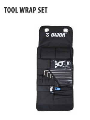 Tool Wrap Unior adalah solusi yang bagus untuk pengendara sepeda yang ingin siap untuk segala hal atau bikepacker modern, Tool Wrap Unior ini akan berguna bahkan untuk pengguna yang lebih menuntut seperti mekanik XC atau CX. Perkakas ini memiliki tas yang ringkas, ringan, dan mudah disimpan di ransel atau mobil Anda. Dalam Tool Wrap Unior ini hadir dengan banyak pilihan perkakas, yang terdiri dari:›Kunci segi enam ujung bola panjang, ukuran 1,5, 2, 2,5, 3, 4, 5, 6, 8 mm›Kunci profil TX, ukuran T25›Alat tutup engkol›Alat rantai, bersama dengan alat katup ban›Putaran berbicara kunci inggris›Set dua tuas ban›Obeng ujung silang PH0Fitur bungkus:›Lubang tali aluminium untuk memasang pembungkus pada jok mobil, dengan fiksasi di bawah sandaran kepala›Tali Velcro® yang kuat untuk menutup dengan aman›Kantong samping dengan penutup penuh menutup untuk suku cadang atau perkakas tambahan›Tali elastis tambahan untuk lebih banyak alat›Terbuat dari bahan berlapis PU, tahan air dan tahan minyak›Anda juga dapat memasang pompa mini di sana
